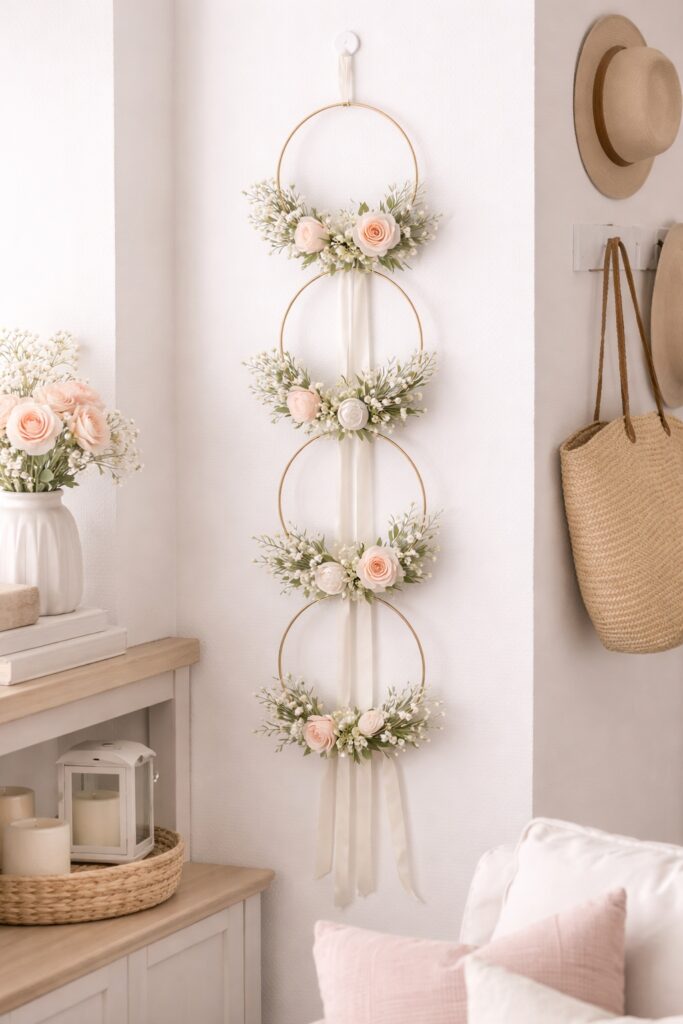 If you want something that feels modern but still soft and feminine, this hanging floral hoop garland is such a statement. It looks elevated, intentional, and just a little bit Pinterest-perfect without taking over your entire room.
