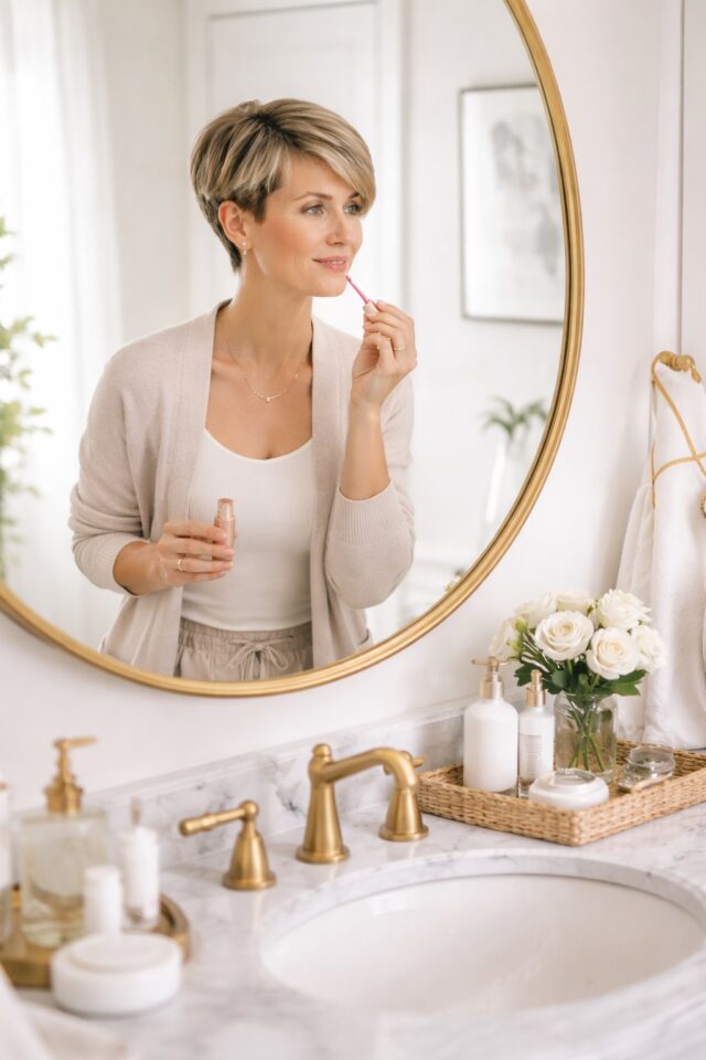 Then add one small finishing touch. Lip balm with a hint of colour. Gold hoops. A delicate necklace. Something that says you thought about yourself this morning.