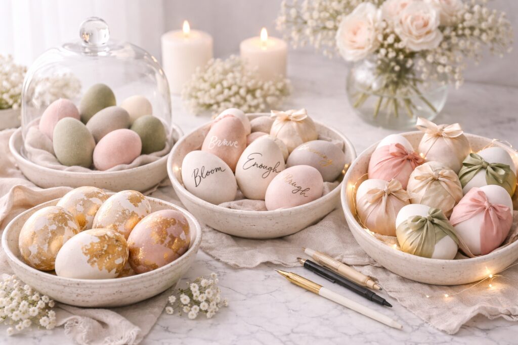 The beauty of these chic Easter egg decorating ideas for adults is that none of them feel childish or overdone. They feel styled. Considered. Intentional.