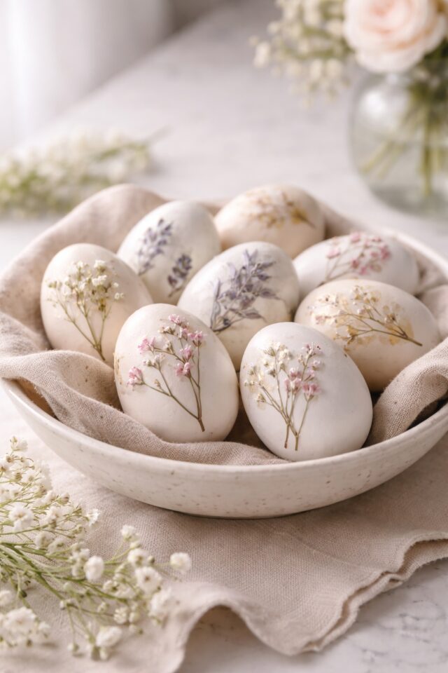 If you love anything that feels like a romantic spring morning in the countryside, botanical eggs are your moment. These are delicate, feminine, and quietly stunning. They look like something you would find styled on a linen covered table with fresh tulips and good coffee.