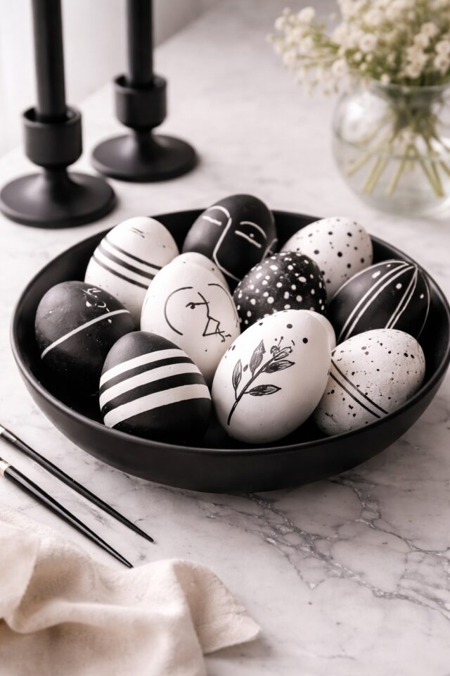 If your style leans clean, graphic, and slightly dramatic, this one is for you. Black and white Easter eggs feel bold, artistic, and unapologetically modern. No pastels. No fuss. Just confident contrast.