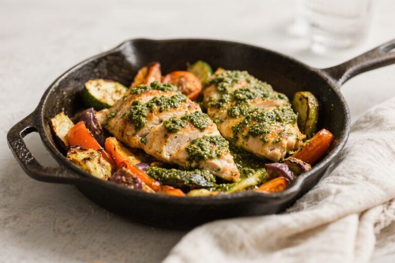 One-Pan Pesto Chicken & Roasted Veg – Simple, Flavor-Packed Dinner