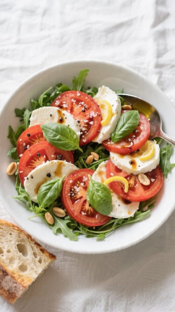 • Texture and contrast: Juicy tomatoes, creamy mozzarella, crisp greens, and a glossy dressing make each forkful interesting.