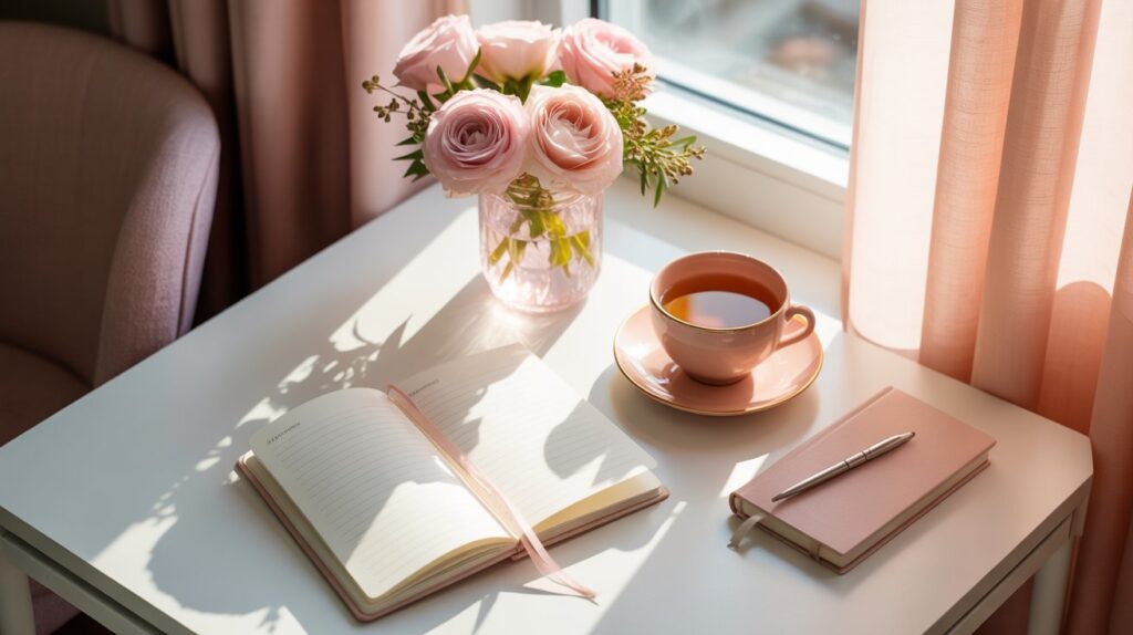 Give yourself permission to slow down. Sip your coffee without rushing. Light a candle while you journal. Spend a few minutes outside each day. These tiny pauses help you reconnect with yourself and bring a sense of calm to your entire routine.